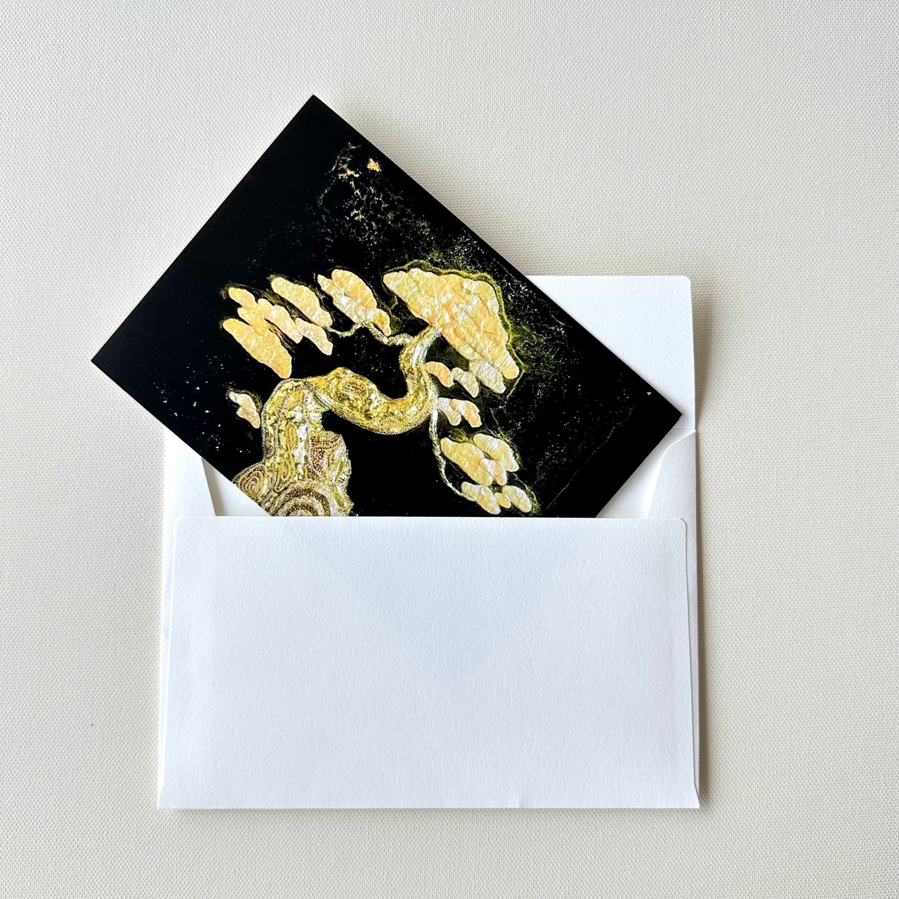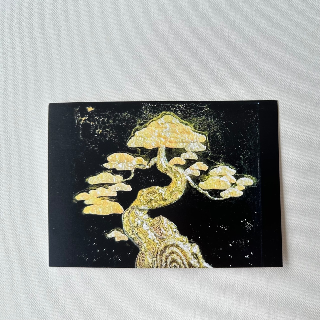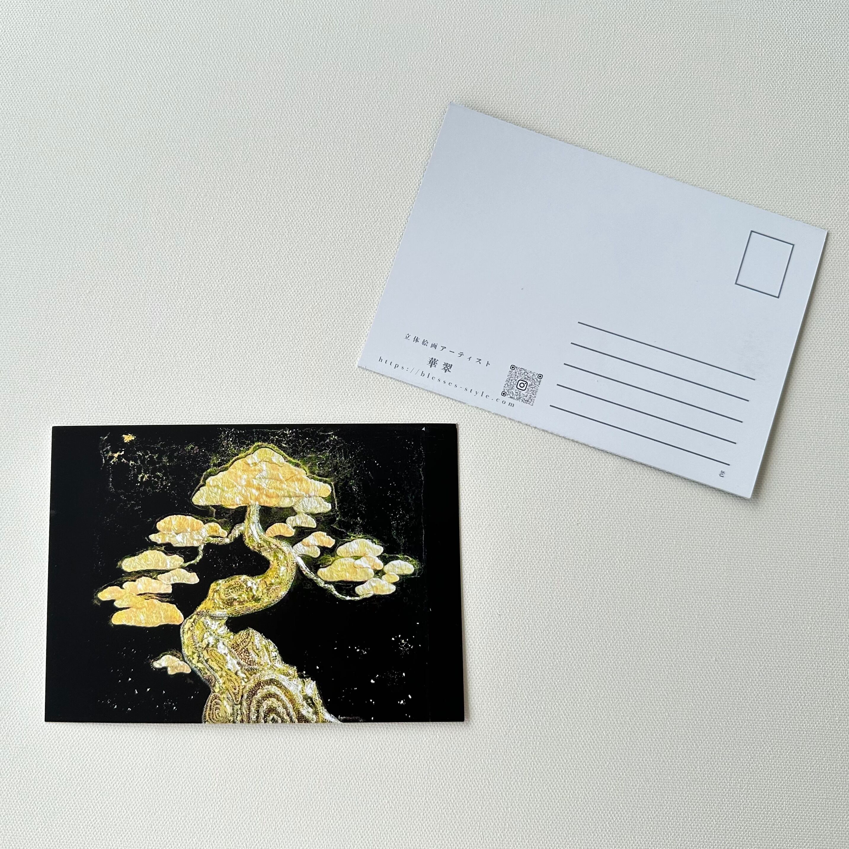 このポストカードは、優雅に佇む老いた金の松の姿が印刷されており、手に取るたびに心が落ち着く瞬間をもたらします。大切な方への感謝の気持ちを伝えるメッセージカードや、インテリアとしても素敵なアイテムです。